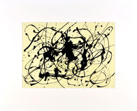 Per i quadri che chiamo “adesivi”, utilizzo una delle materie plastiche tra le più controverse : il polivinilcloruro (PVC). Si tratta di un materiale di facile reperibilità che mi permette di parlare dell’atto, gestualmente teatrale, che contraddistingue la pittura d’azione americaina e il suo protagonista Jackson Pollock. L’atto pittorico del dripping si concretizza ritagliando e ricomponendo minuziosamente le forme e le gocce di colore che, con il gesto pollockiano, vanno a solidificarsi sulla tela. L’azione gestuale viene da me spogliata della sua spontaneità e violenza, per giungere ad un assestamento estremamente lento.